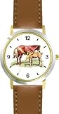 More Detail For Mare and Foal Horse WATCHBUDDY DELUXE TWO TONE THEME WATCH Arabic Numbers Brown Leather Strap Children s Size Small Boy s Size Girl s Size