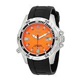 - Stainless-steel case; orange dial; date function