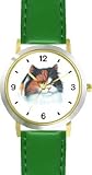 More Detail For Calico Persian Cat JP WATCHBUDDY DELUXE TWO TONE THEME WATCH Arabic Numbers Green Leather Strap Children s Size Small Boy s Size Girl s Size