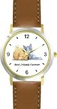 More Detail For Yellow Labrador Retriever Puppy and Gray White Kitten JP Dog WATCHBUDDY DELUXE TWO TONE THEME WATCH Arabic Numbers Brown Leather Strap Children s Size Small Boy s Size Girl s Size